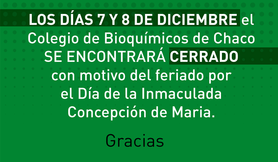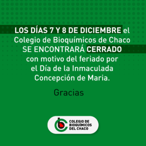NOTICIAS A tener en cuenta Por Agustina Mots - 04/12/2020 1 32734 FacebookXPinterestWhatsApp Informamos que los días 7 y 8 diciembre el Colegio permanecerá cerrado con motivo del feriado por el Día de la Inmaculada Concepción de María y su feriado puente. Gracias