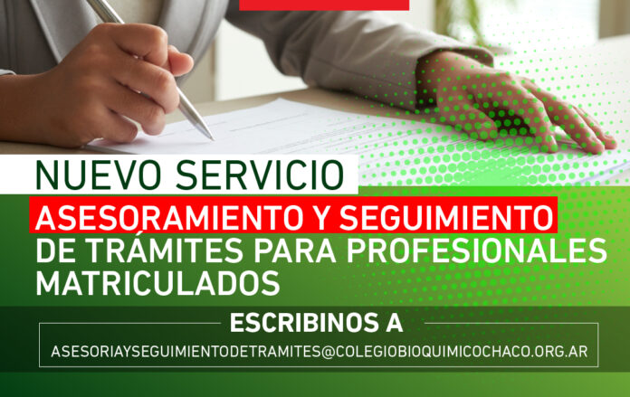 Informamos que ahora el Colegio cuenta con un servicio de asesoría y seguimiento de trámites exclusivo para nuestros profesionales matriculados, que podrán acceder cuando así lo requieran.