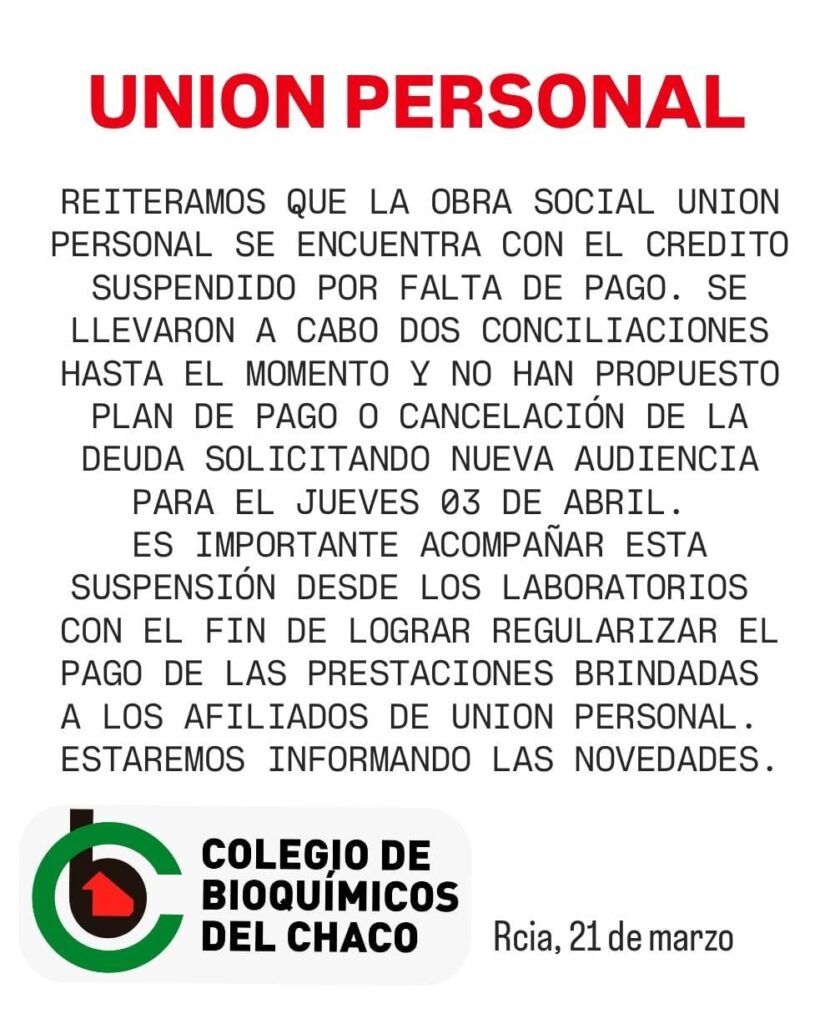 NOTICIAS ATENCIÓN AFILIADOS: Obra Social Unión Personal con Crédito Suspendido Por Agustina Mots - 21/03/2025 0 1083 FacebookXPinterestWhatsApp