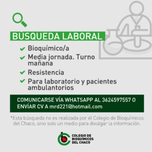 Importante: Esta búsqueda no es realizada por el Colegio de Bioquímicos del Chaco, sino solo un medio para divulgar la información.