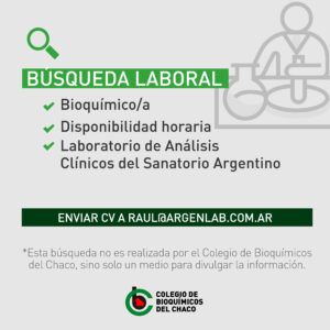 Importante: Esta búsqueda no es realizada por el Colegio de Bioquímicos del Chaco, sino solo un medio para divulgar la información.