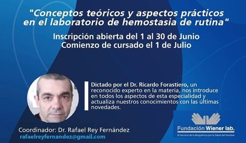 Compartimos con ustedes el nuevo curso que la Fundación Wiener lab. va a brindar sobre «Conceptos Teóricos y aspectos prácticos en el laboratorio de hemostasia de rutina«.