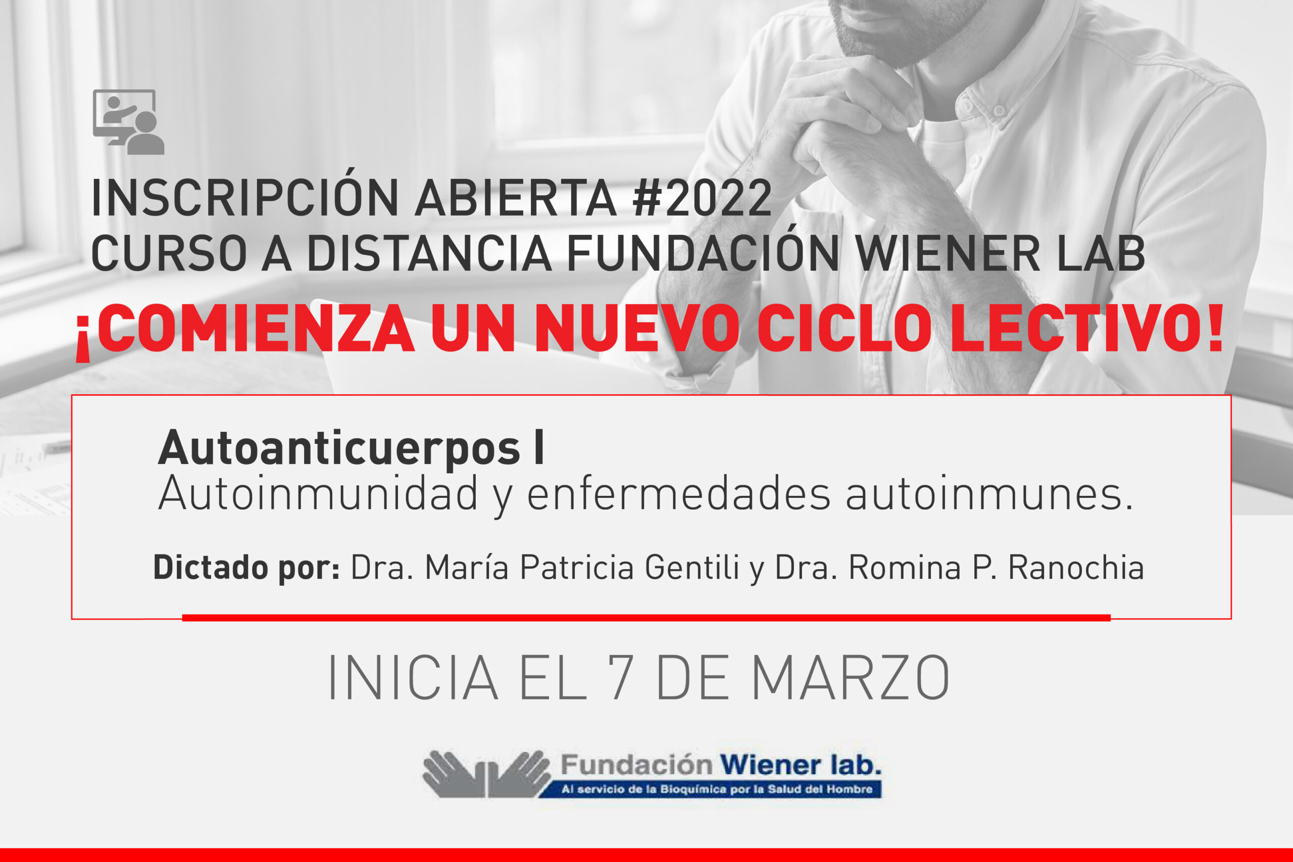 Se abre la inscripción al primer curso a distancia que conforma el ciclo lectivo 2022 de la Fundación Wiener lab. La temática a abordar será «Autoanticuerpos I – Autoinmunidad y enfermedades autoinmunes» y comenzará el lunes 7 de marzo.