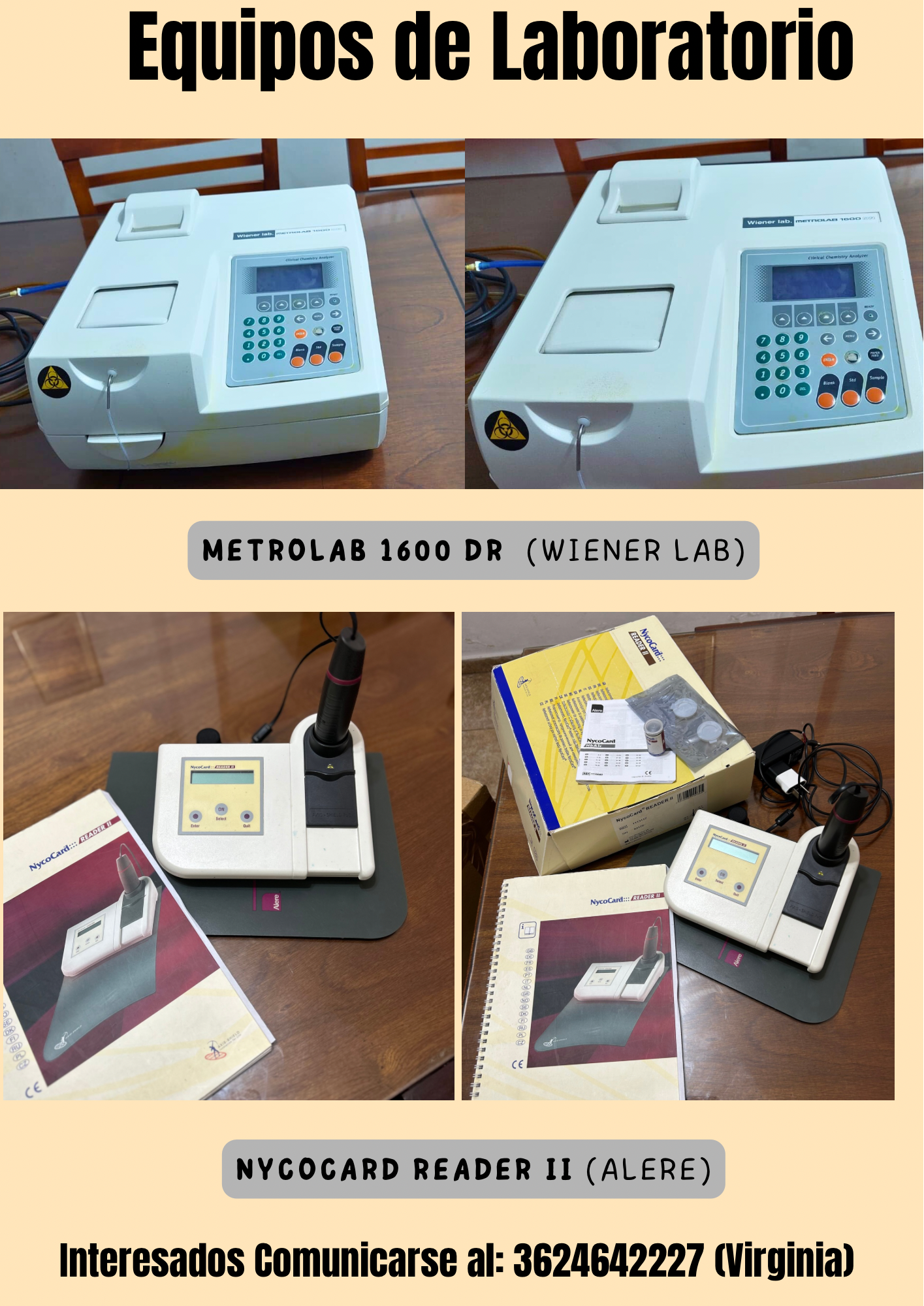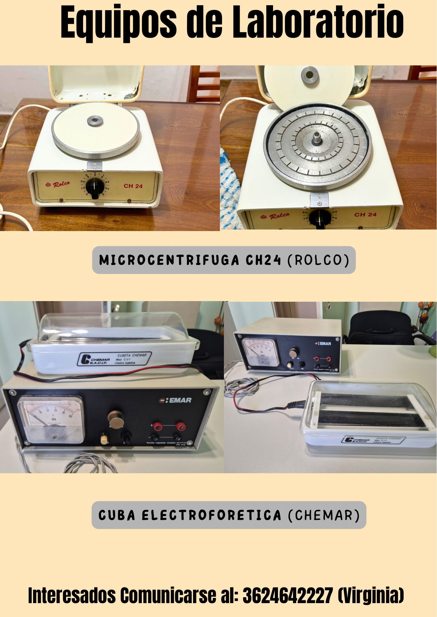 COMUNICADOS Equipos y muebles de laboratorio a la venta Por Agustina Mots - 05/08/2025 0 794 FacebookXPinterestWhatsApp Interesados contactarse con la Bioquímica María Virginia Molina Celular: 3624642227 Correo electrónico: mvmolina50@yahoo.com.ar 1 de 3
