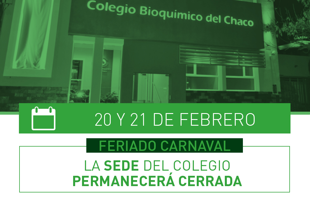 NOTICIAS Feriado de carnaval 2023 Por Agustina Mots - 16/02/2023 0 974 FacebookXPinterestWhatsApp Informamos a nuestros matriculados que el día lunes 20 y martes 21 de febrero Colegio se encontrará cerrado, debido al Feriado Nacional por celebrarse carnaval. Nos volvemos a encontrar el miércoles 22, en nuestro horario habitual.