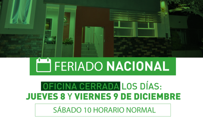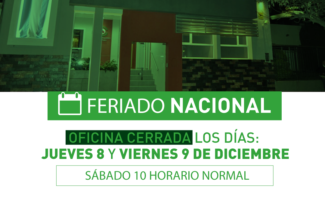 NOTICIAS Feriado Nacional: Día de la Inmaculada Concepción de María Por Agustina Mots - 07/12/2022 0 1103 FacebookXPinterestWhatsApp Atención: El Colegio se encontrará cerrado los días jueves 8 y viernes 9 de diciembre, debido al Feriado Nacional por el Día de la Inmaculada Concepción de María. El día Sábado 10, nos encontraremos en nuestro horario habitual de trabajo.