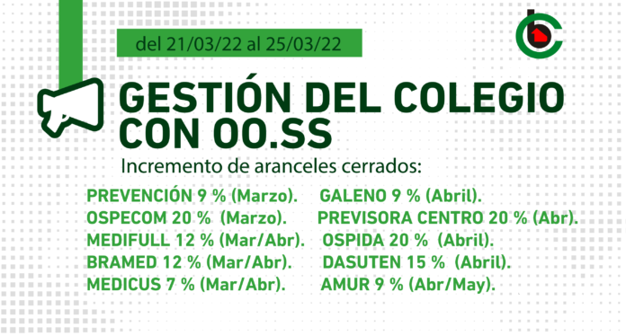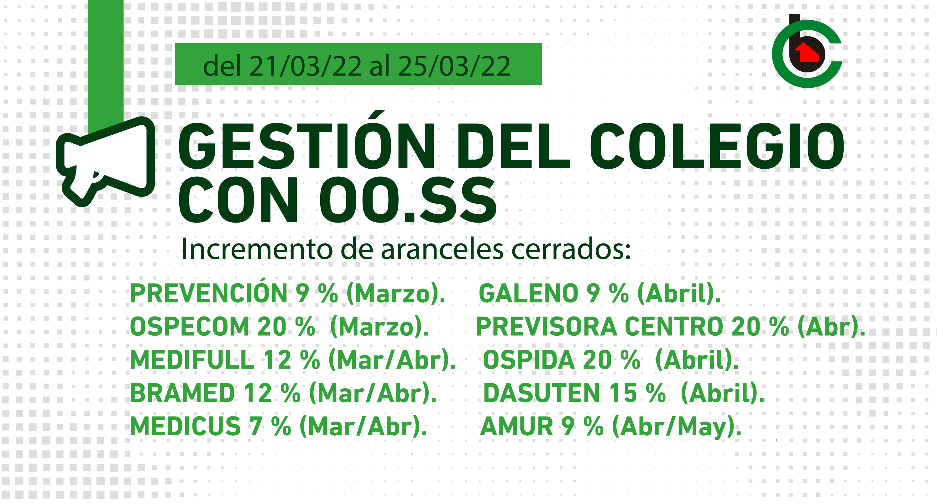 Les acercamos a nuestros matriculados, las actualizaciones de las OO.SS. con las que el Colegio ya cerró su incremento para los próximos meses: