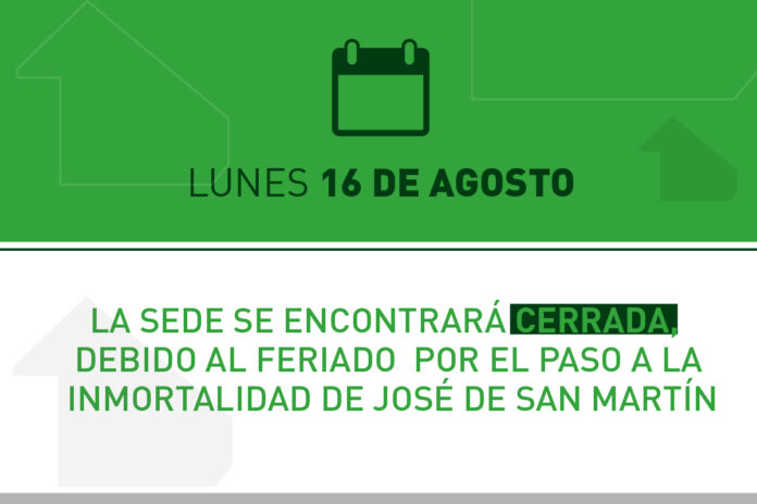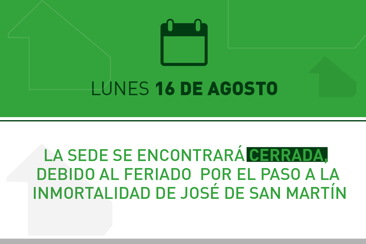 NOTICIAS Información importante sobre la atención administrativa Por Agustina Mots - 12/08/2021 24 10455 FacebookXPinterestWhatsApp El Colegio se encontrará cerrado el lunes 16 de agosto debido al Feriado Nacional por el Paso a la Inmortalidad de José de San Martín.
