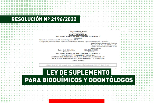 La Cámara de Diputados de la Provincia, según boletín oficial, aprueba que: a partir del 1 de junio del año 2022, los profesionales Bioquímicos y Odontólogos, dependientes del