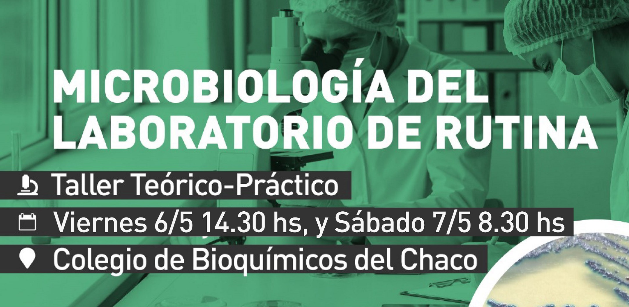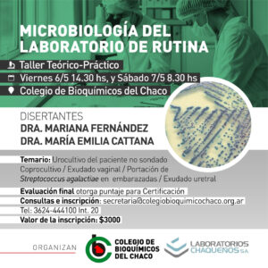 El Colegio de Bioquímicos del Chaco invita a los profesionales a participar de este Taller Teórico- Práctico a realizarse los días viernes 6 y sábado 7 de mayo próximo en las instalaciones de su sede.