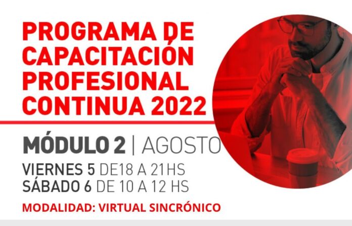 Se encuentra abierta la inscripción a una nueva jornada del «Programa de Capacitación Profesional Continua». En esta oportunidad se desarollará será de manera virtual sincrónica, los días 5 y 6 de agosto.