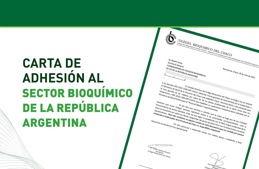 El Consejo Directivo del Colegio Bioquímico del Chaco, solicitó a Cubra (Confederación Unificada de la República Argentina) y a la Coordinadora de Colegios, su adhesión y acompañamiento en relación a la marcada situación de inequidad que está sufriendo nuestra profesión, a través los decretos DEC-2022-1266-APP-CHACO y el DEC-2022-1290-APP-CHACO firmados por el Gobernador y el Ministerio de Salud de la Provincia del Chaco.