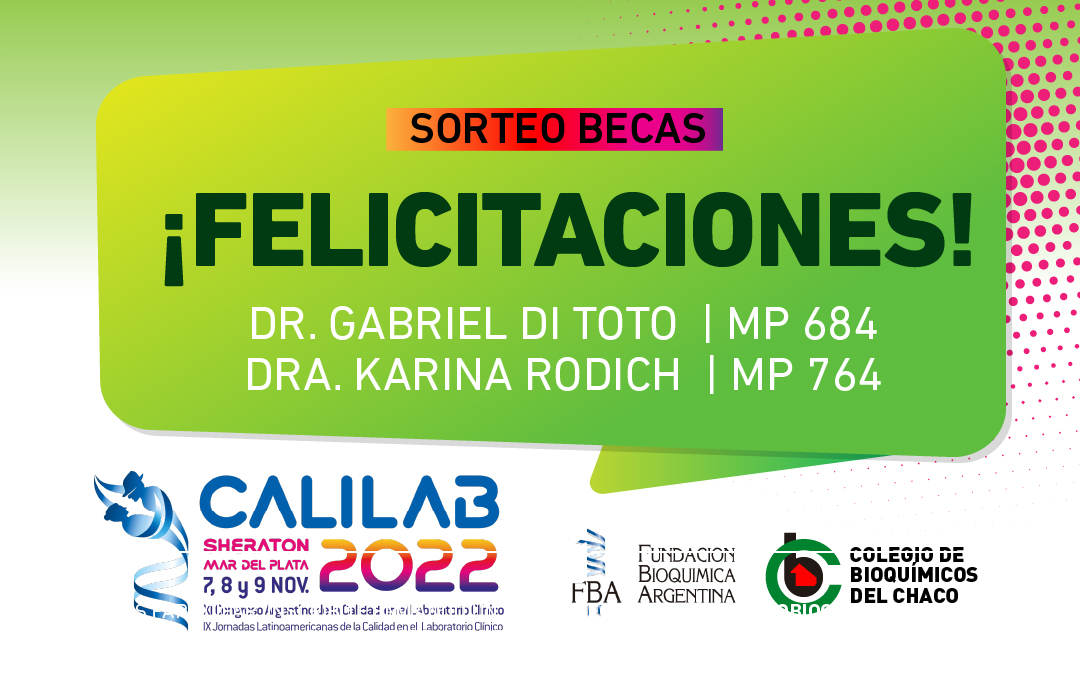 En el día de ayer, se realizó el sorteo por dos becas para participar del CALILAB que se realizará el día 7, 8 y 9 de noviembre en la ciudad de Mar del Plata, organizado por la FBA Fundación Bioquímica Argentina.